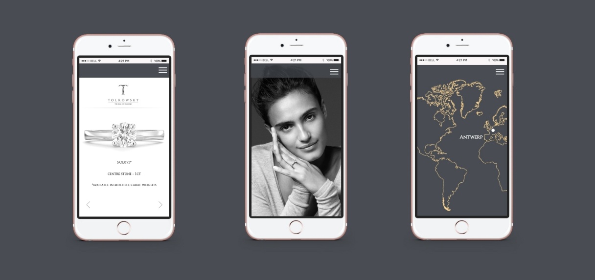 Tolkowsky is the world’s most renowned name in diamond cutting. Its inventor, Marcel Tolkowsky, created the Ideal Cut diamond and pioneered the modern round brilliant diamond cut, and today Tolkowsky Diamonds can be found in many of the world’s finest jewellery retailers. Giant worked closely with Tolkowsky to produce a sparkling range of marketing materials, including an online diamond catalogue, posters and point-of-sale materials.